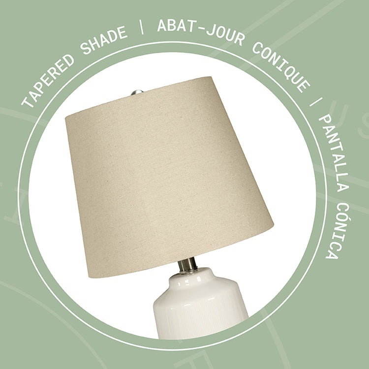 Modern Design: Elegant ceramic table lamp featuring a sleek white base and contemporary silhouette perfect for any room décor