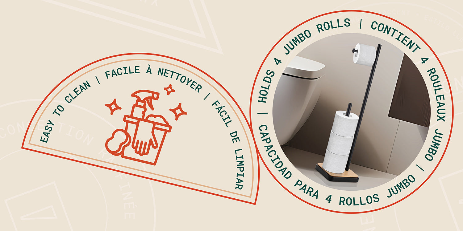 Sturdy Construction: This premium paper roll holder is crafted from durable materials, including a solid bamboo accent base weighing