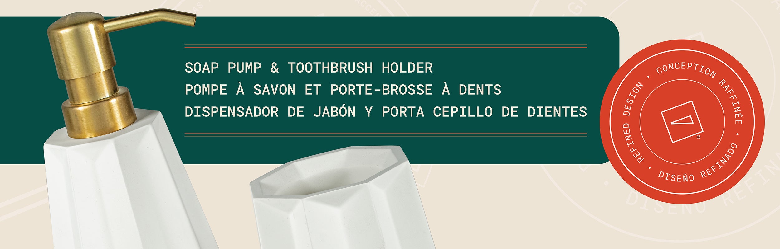 Coordinated Set: Includes a soap pump and matching toothbrush holder for a cohesive countertop look