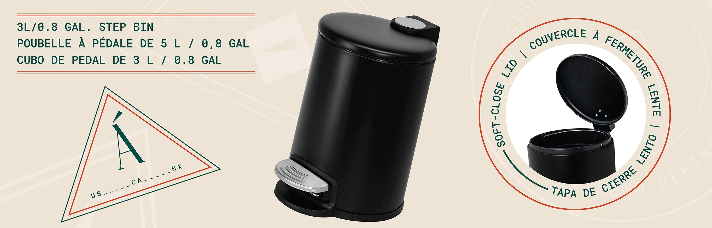 Compact Size: With a 3 Liter (0.65 gallon) capacity, this wastebin is perfect for smaller bathrooms or spaces where space is limited.