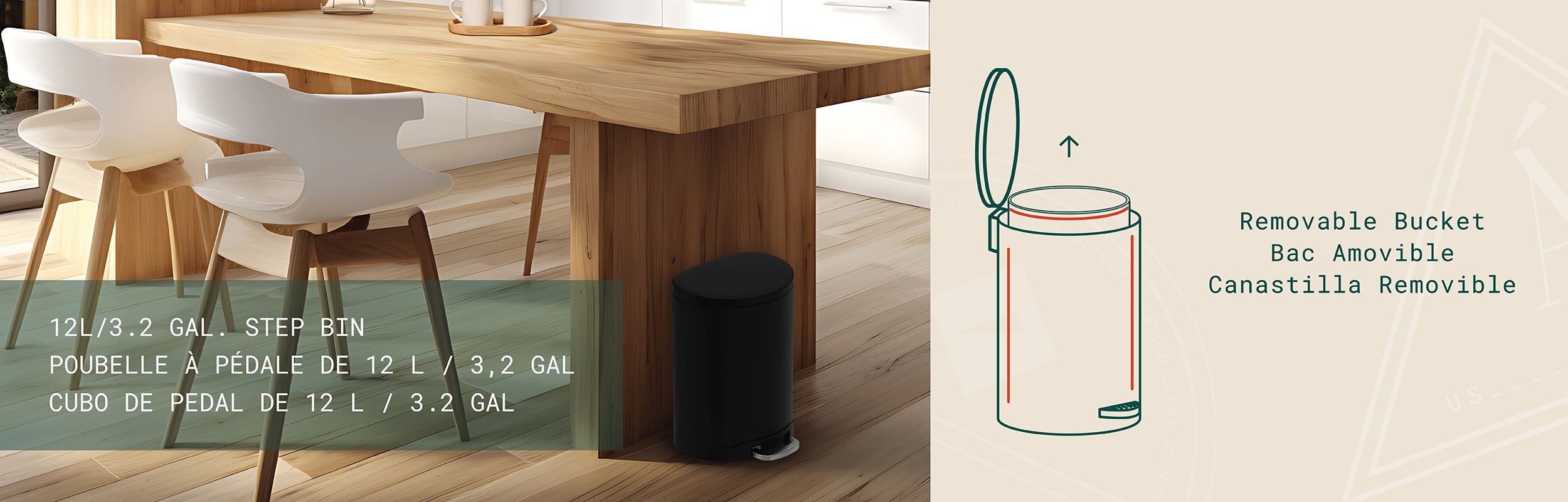Available in 12L or 40L Sizes: Choose the right capacity for your space, whether you need a compact bin for small rooms or a larger option for high-traffic areas.