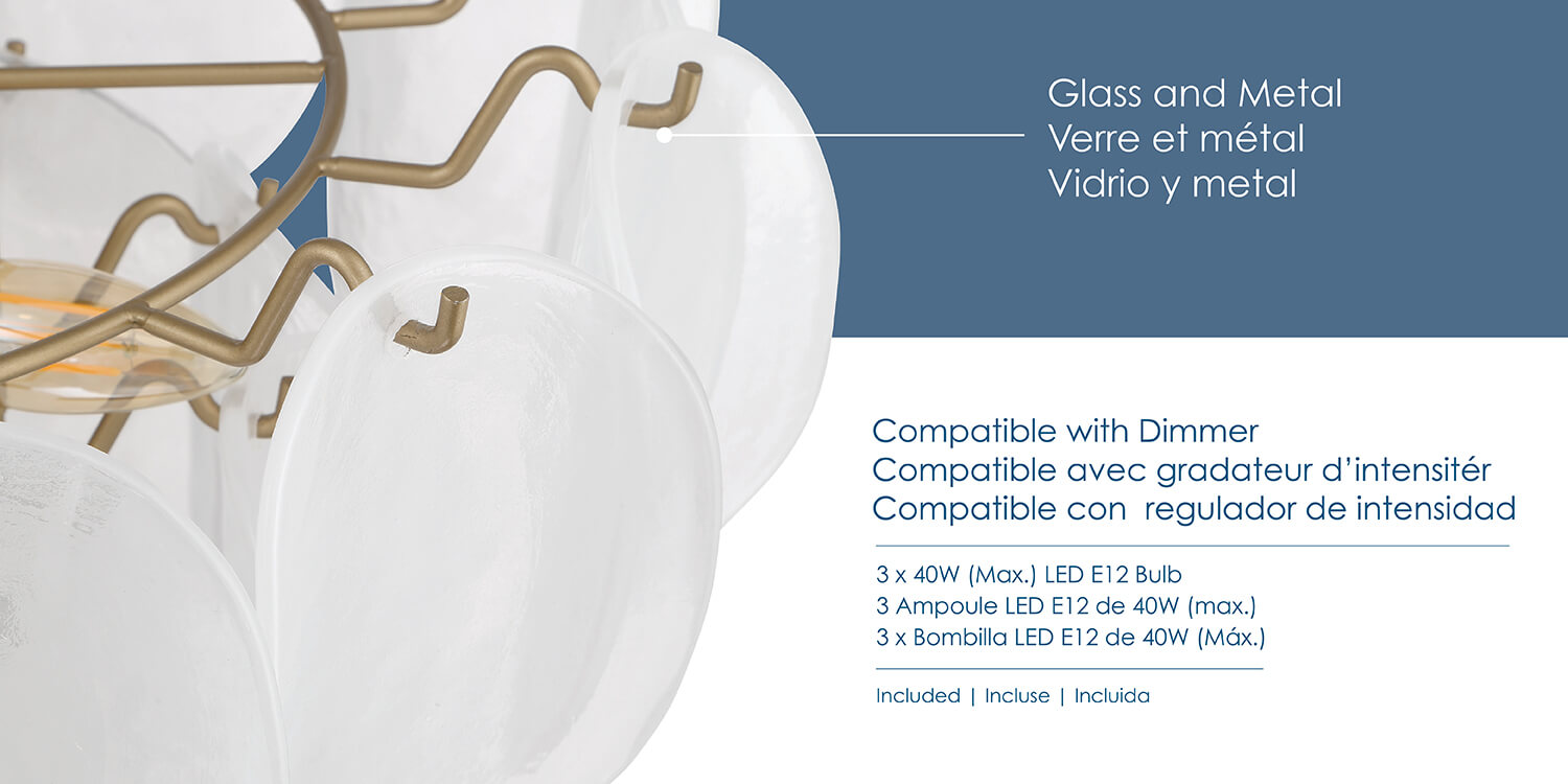 LED Bulbs Included: Comes with three 4W E12 LED bulbs (2700K, CRI90).