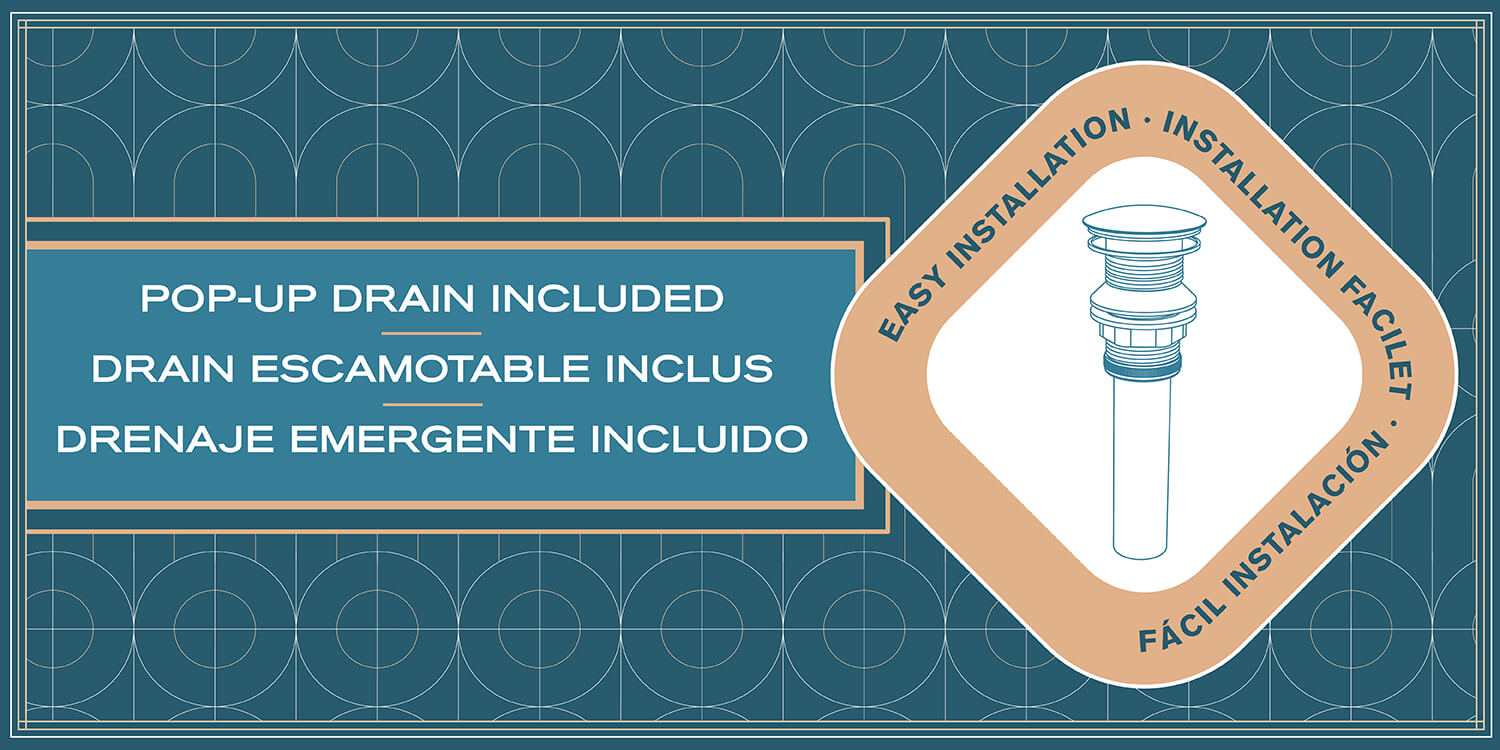 Complete Set: Basin with single-handle faucet and matching pop-up drain included.