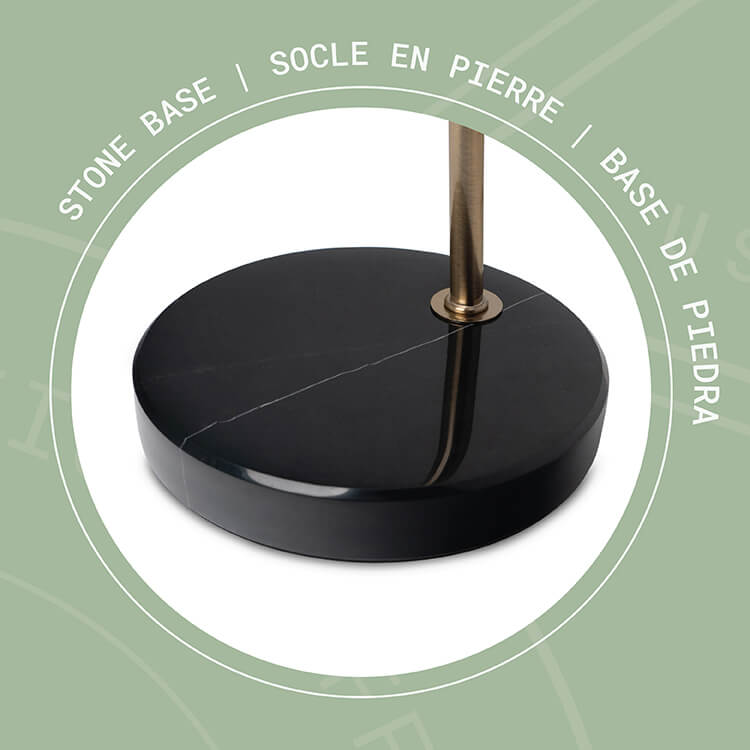 Material: Cuerpo de metal, base de piedra, pantalla de tela