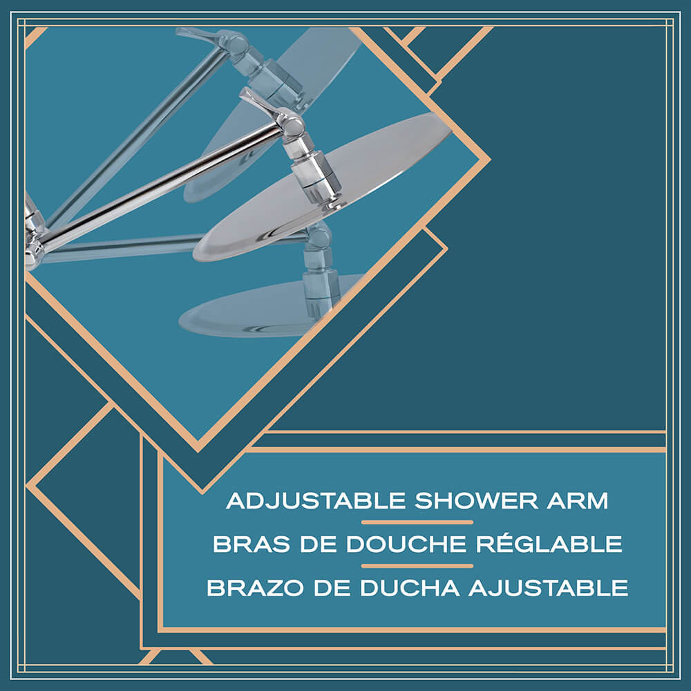 9.5" strong arm with 3-way diverter for easy switching between shower