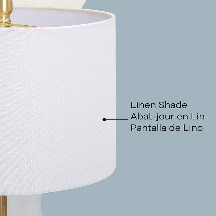 - Matériau: Corps en métal avec abat‑jour en lin blanc