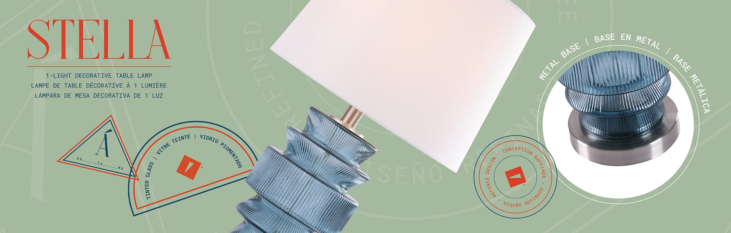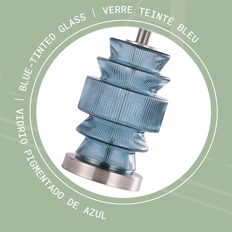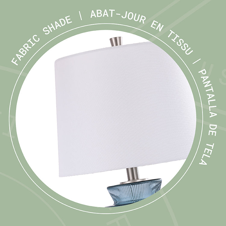 Artisanat haut de gamme : fabriqué avec un corps en verre teinté durable, une base en métal robuste et un abat-jour en tissu conique pour une finition équilibrée et élégante.